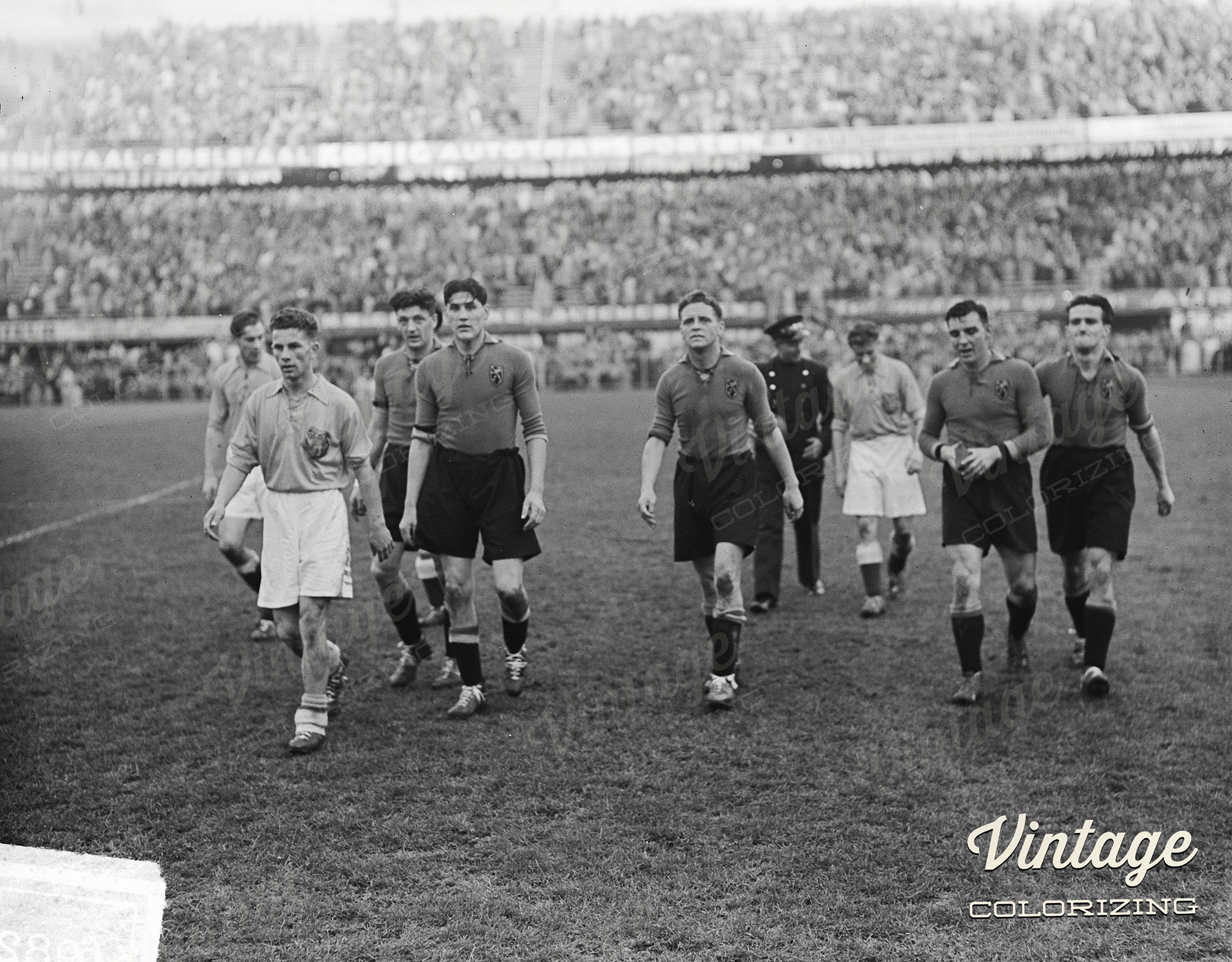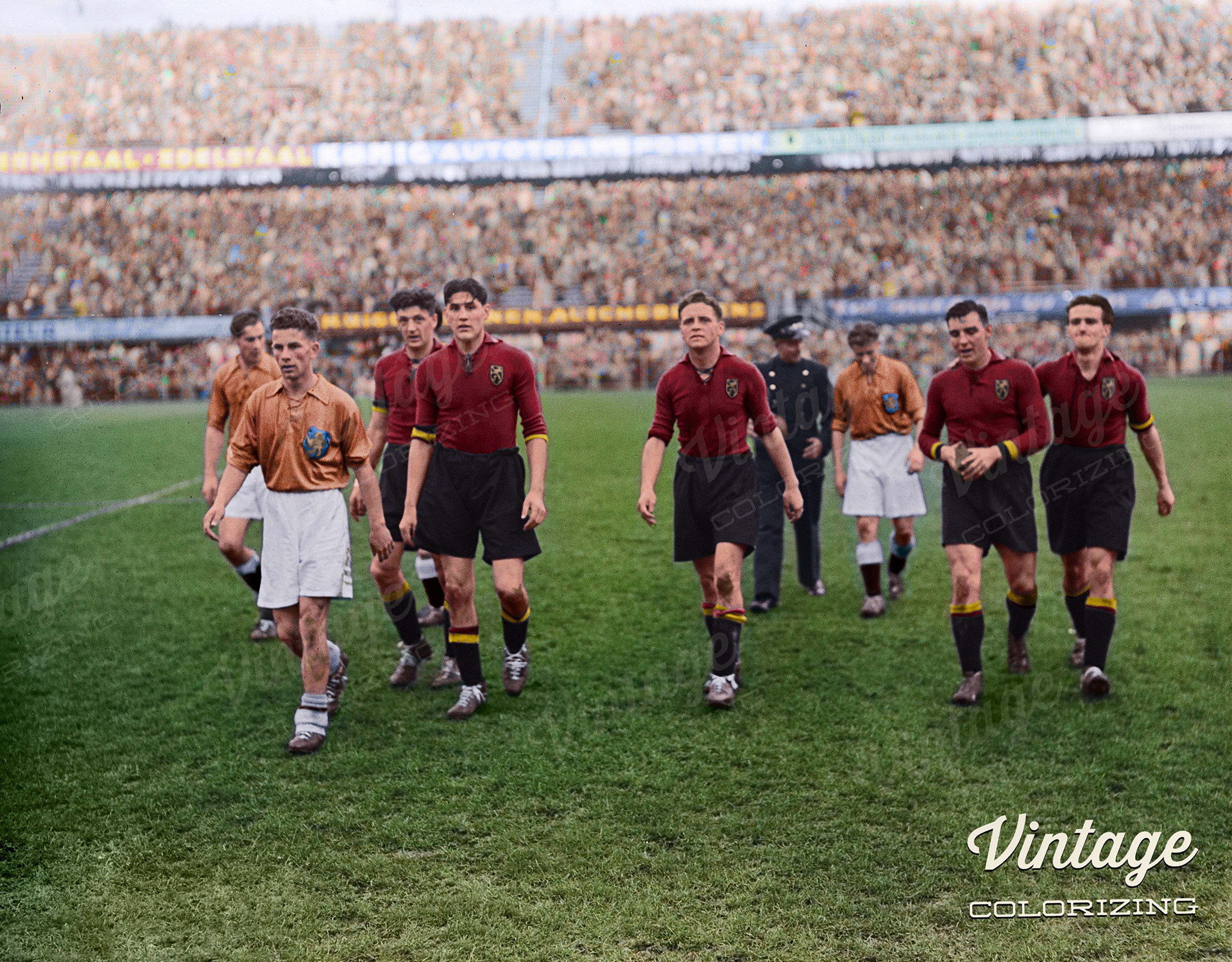 Nederland versus België op 6 november 1949 in de Rotterdamse Kuip. De eindstand is 0-1.
